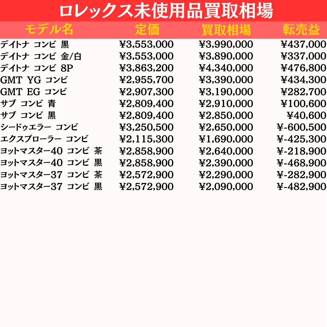 ロレックスの相場は、ギャラ日や状態によって大きく変動します。ブログ内ご紹介した相場は「未使用・ギャラ1ヶ月以内/中古品・ギャラ半年以内」の一例にすぎません。ギャラ日が1年違うだけで数万円変わることもあり、外装の状態や付属品の有無によっても査定額は大きく変わります。また、今回紹介していないモデルの相場が気になる方は、下記の買取業者がおすすめです。査定は完全無料なので相見積もりや腕時計相場把握としてご活用ください。