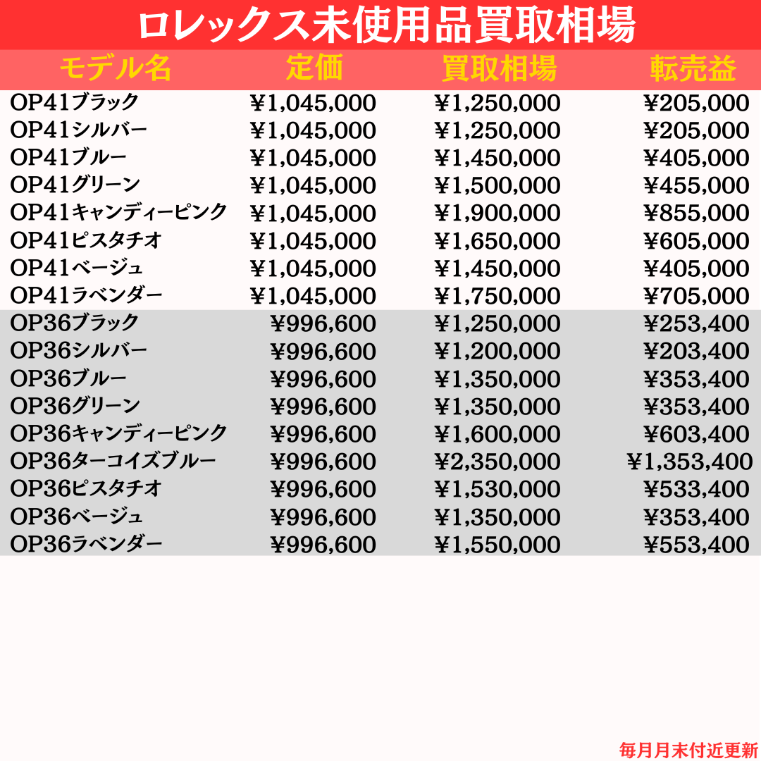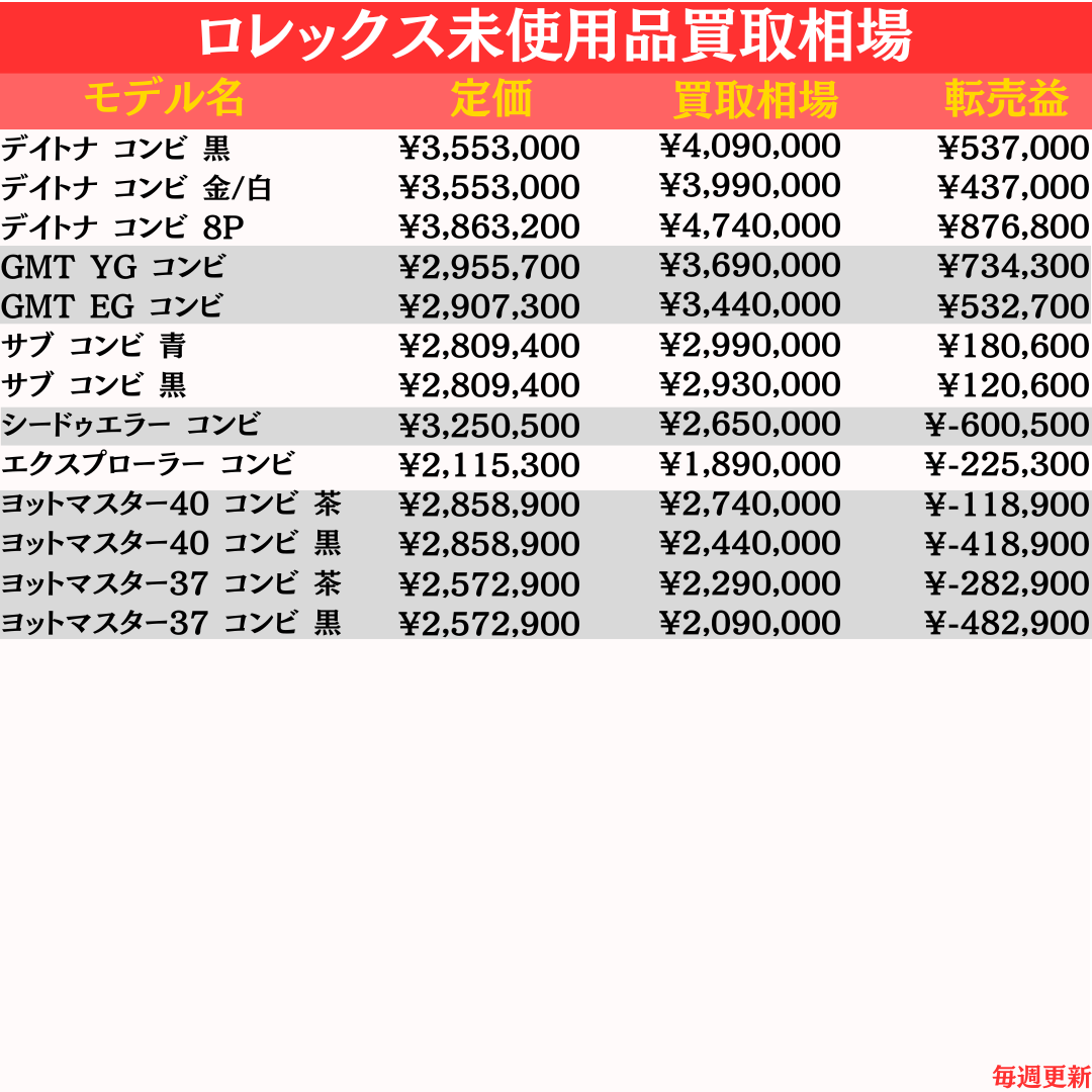 \ 最新のロレックス買取相場早見表 /