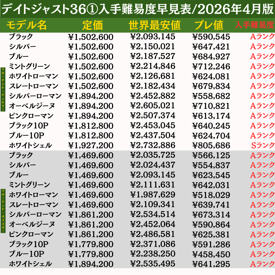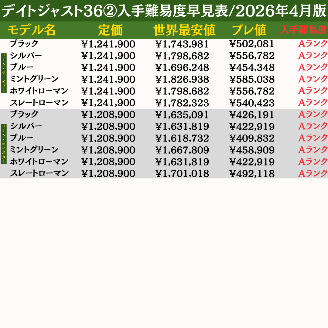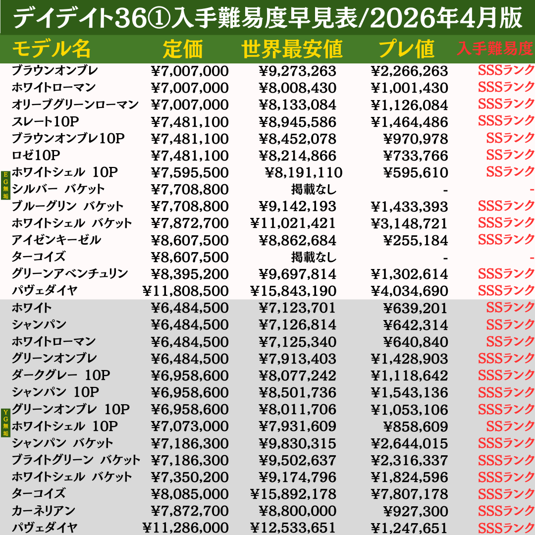 ▶︎ロレックス入手難易度早見表