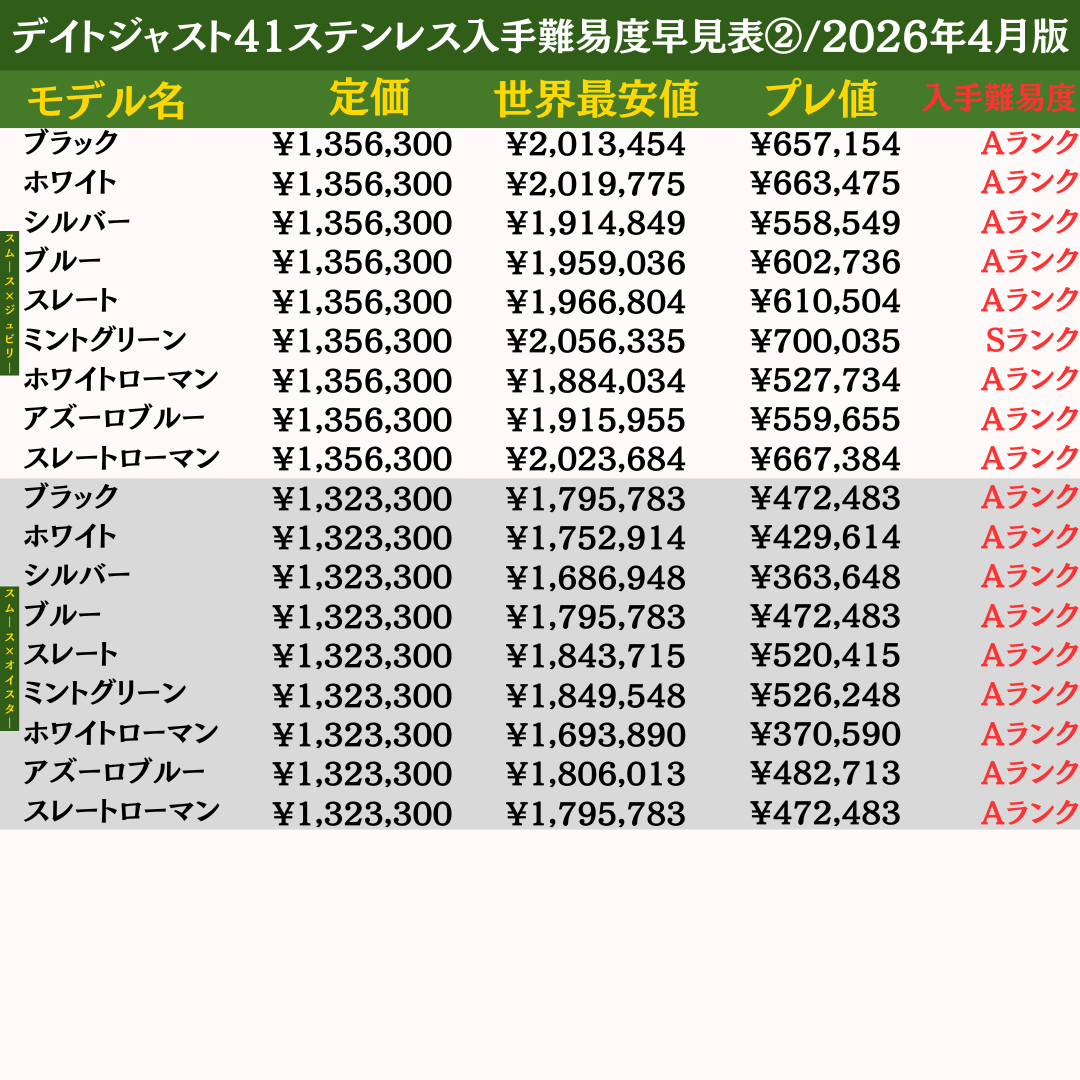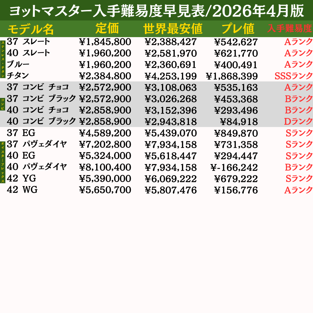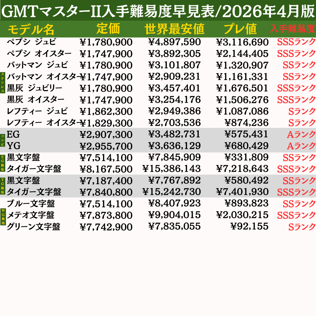 ▶︎ロレックス入手難易度早見表