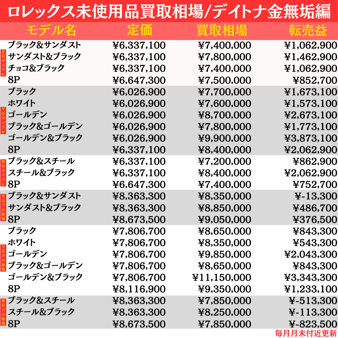 ▶︎デイトナ金無垢買取相場