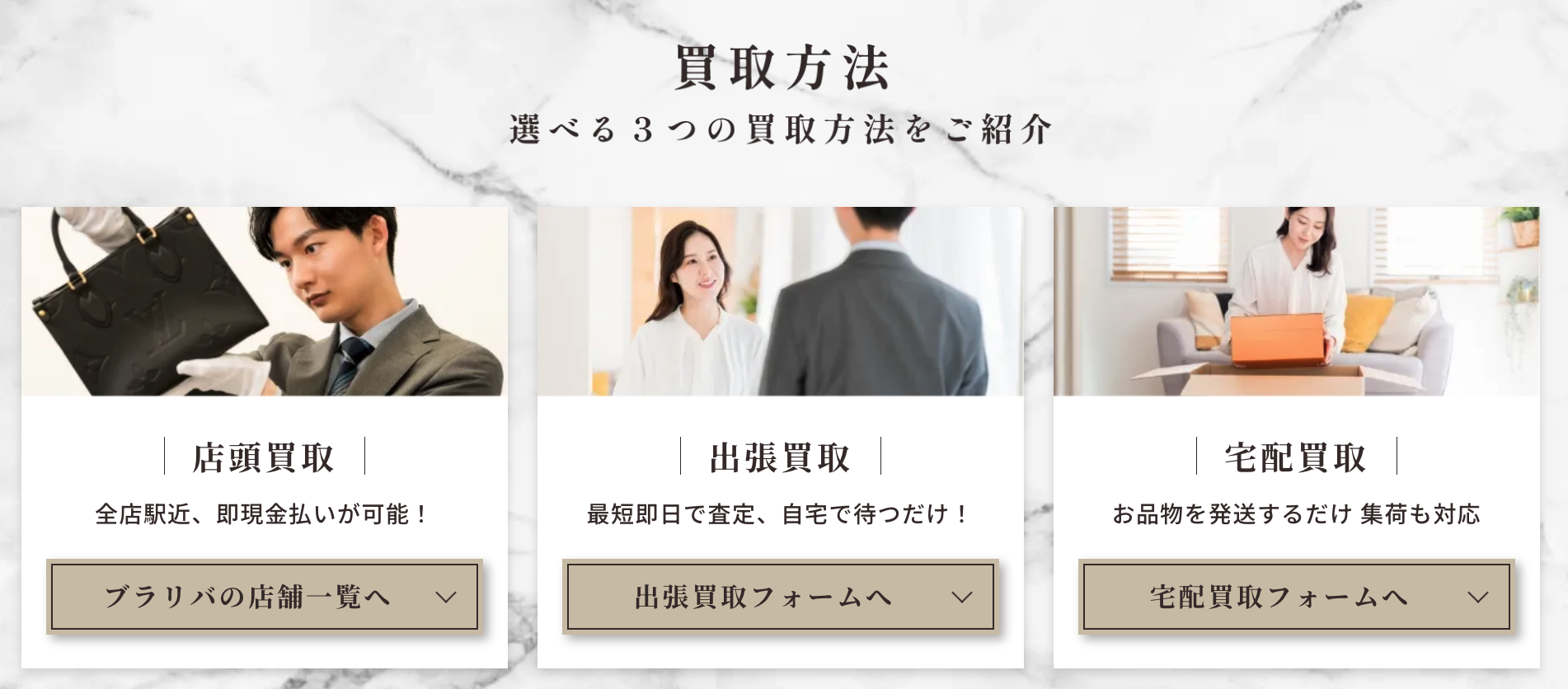 宅配・出張買取にも対応。状況に応じて使い分けられる
