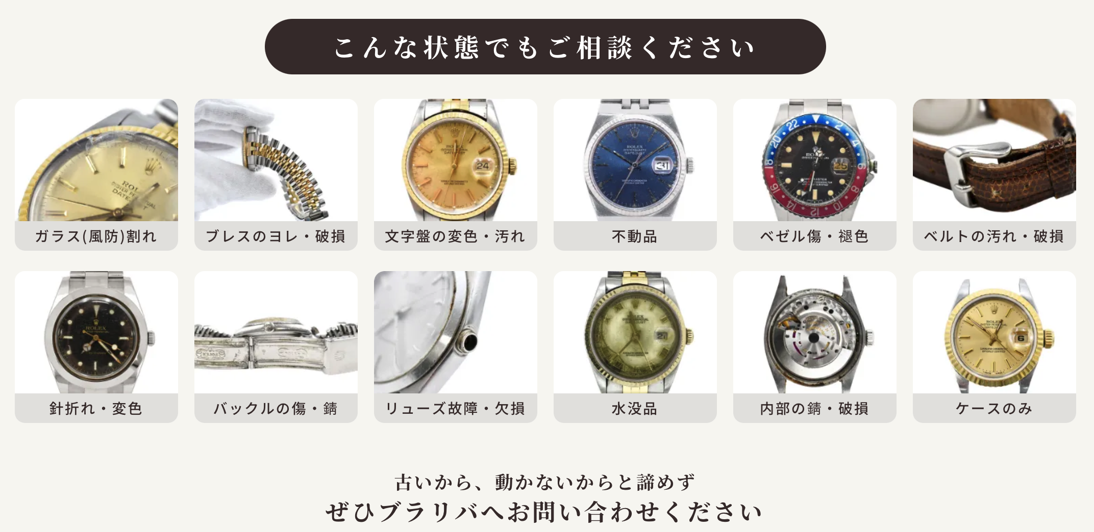 また、動かない状態のロレックスでも査定対象になります。