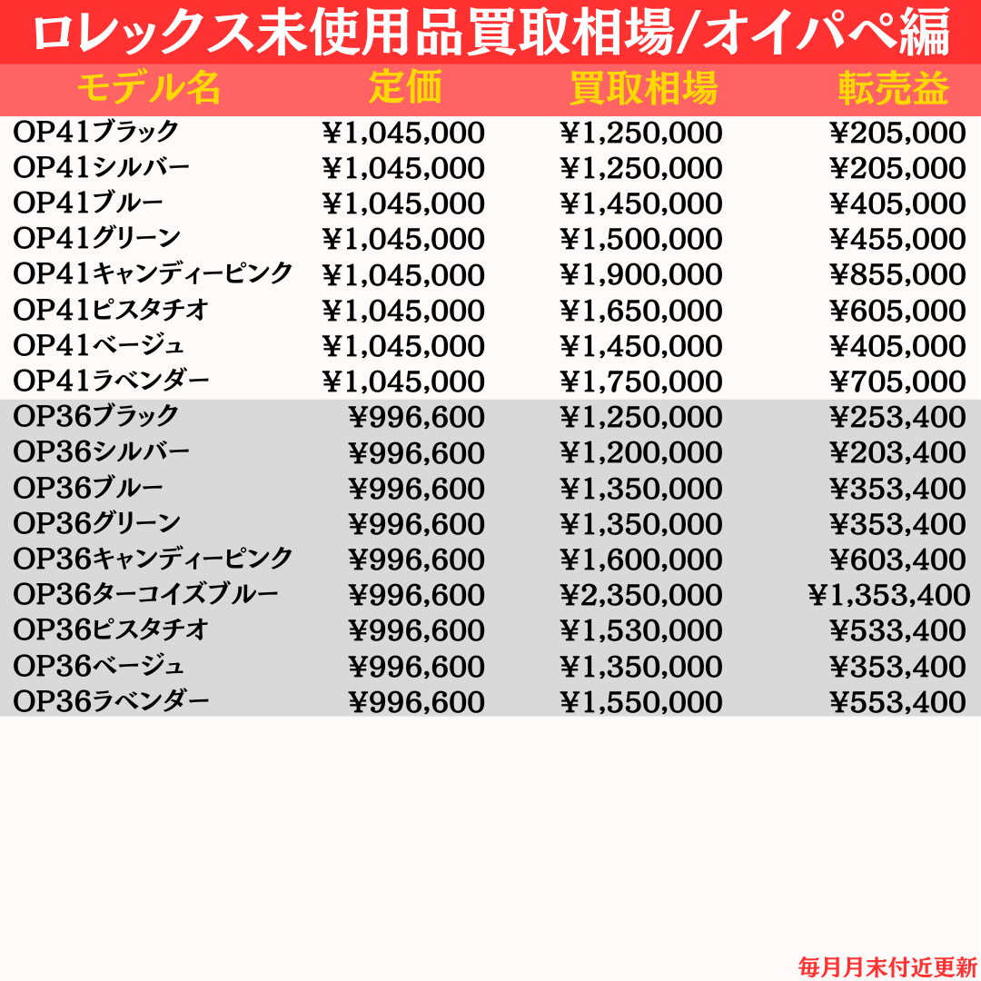 同じ未使用品であってもギャラの日付が古いモデルは最新の日付のモデルと比べ査定は下がります。