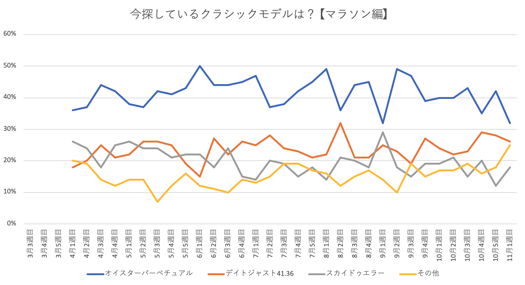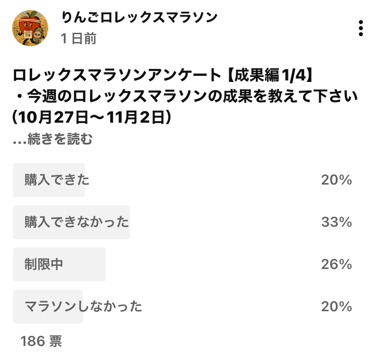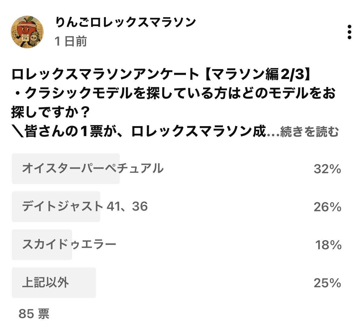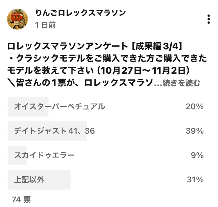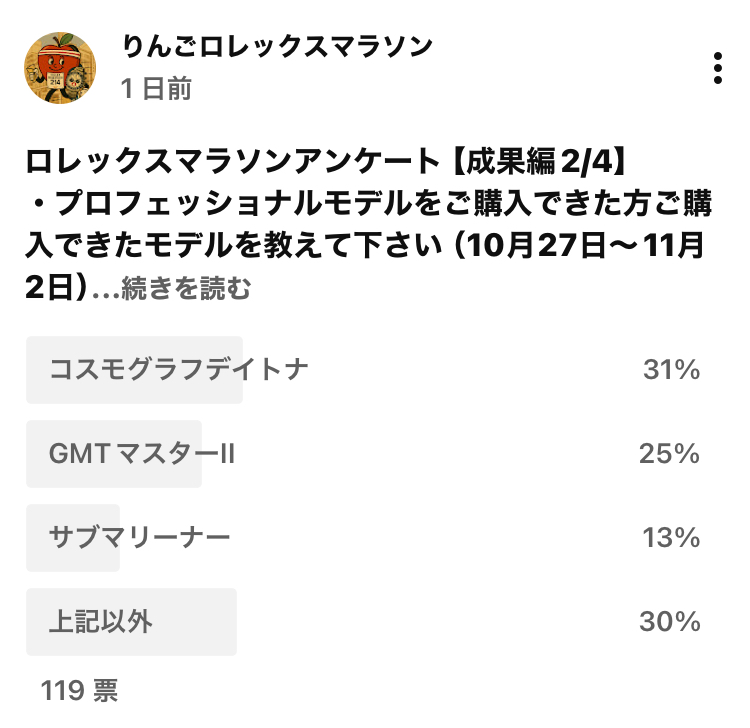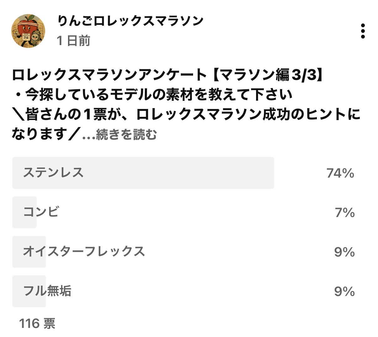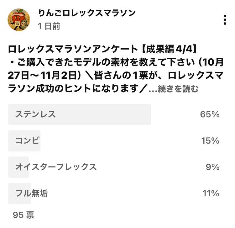 当YouTubeチャンネルでは、毎週コミュニティ機能を活用し、「マラソン編」と「成果編」のアンケートを実施しています。これらのアンケート結果を、このブログでアーカイブとして公開していきます。ロレックスマラソン中の方は、ぜひ参考にしてください。
