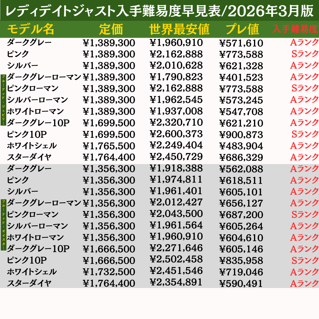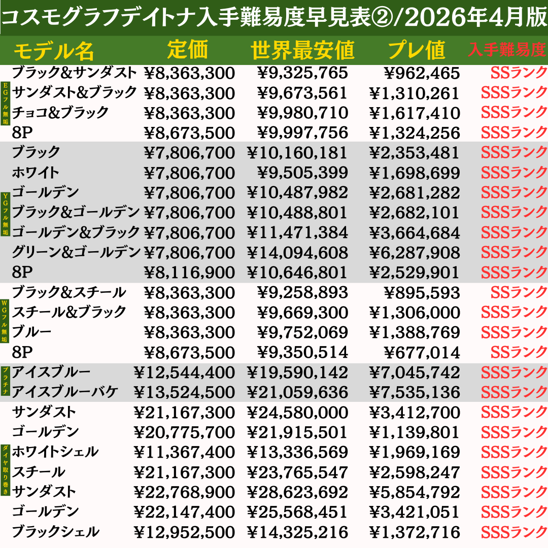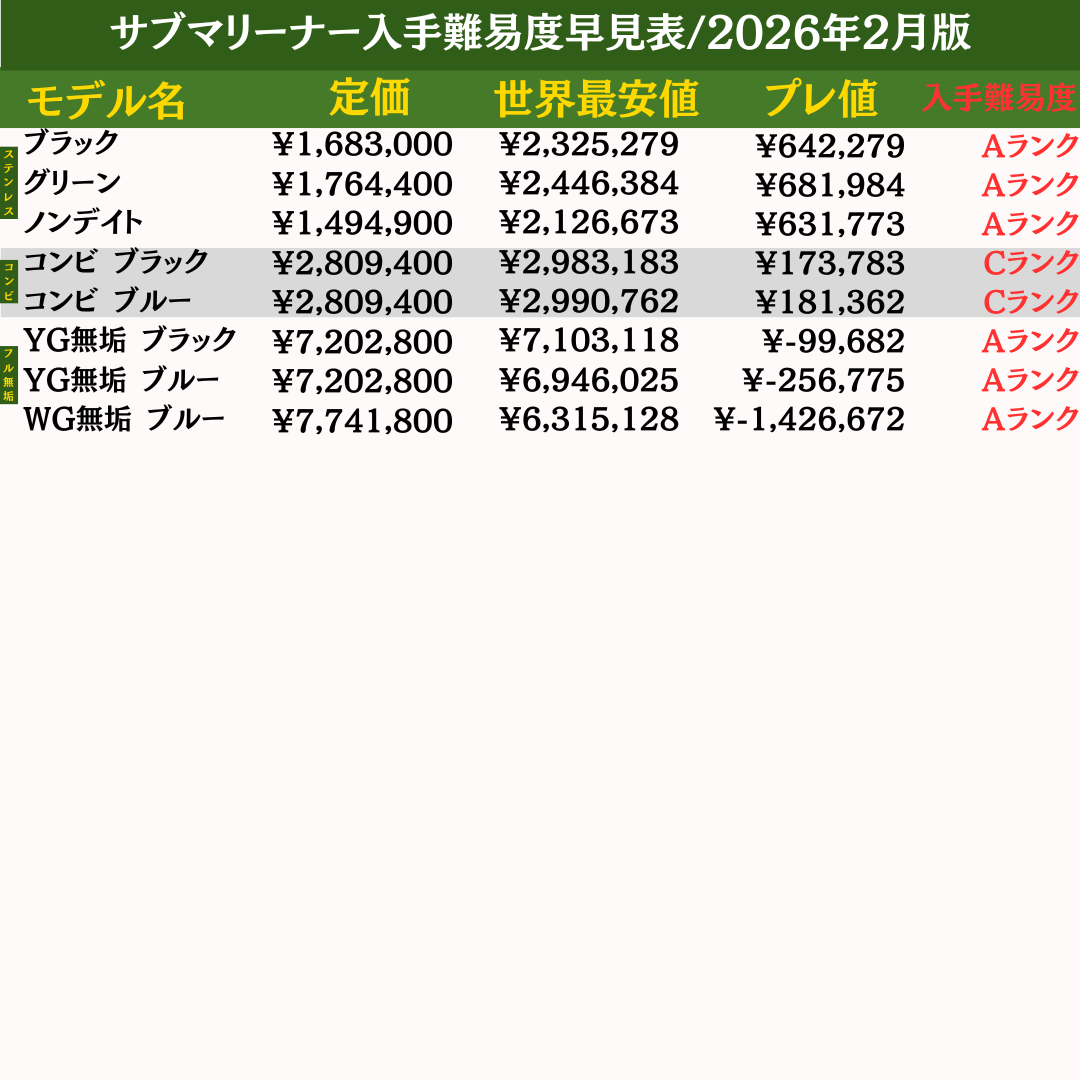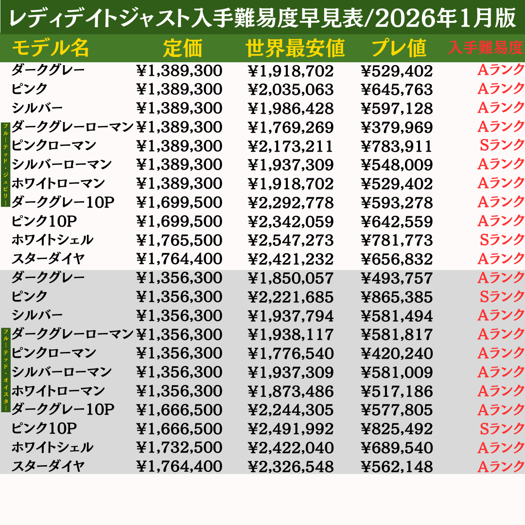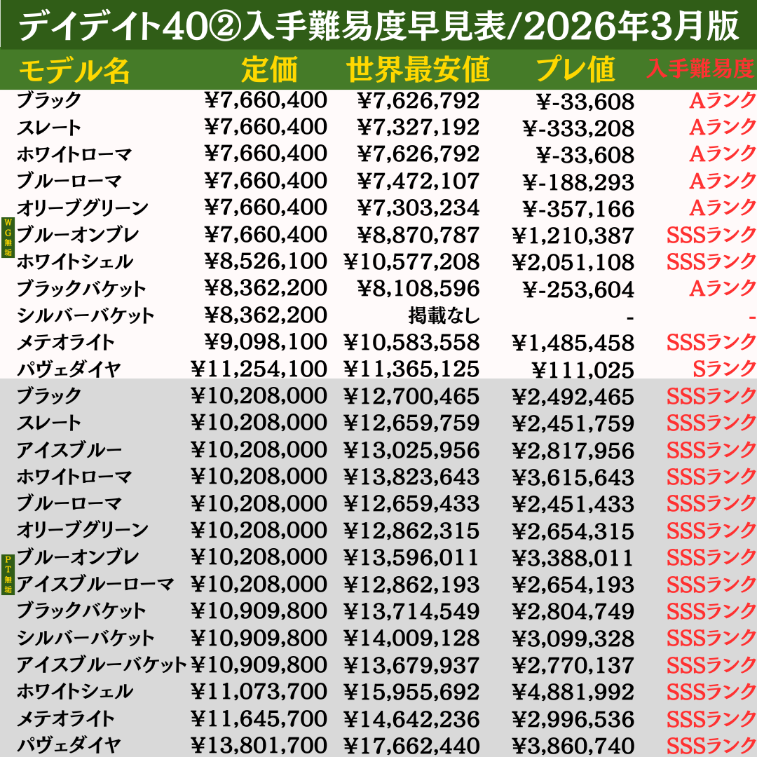 本ページでは、ロレックス全460モデルの最新入手難易度を一覧で確認できる「早見表」を公開しています。