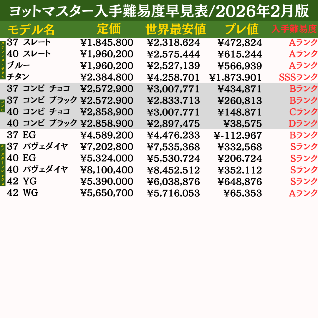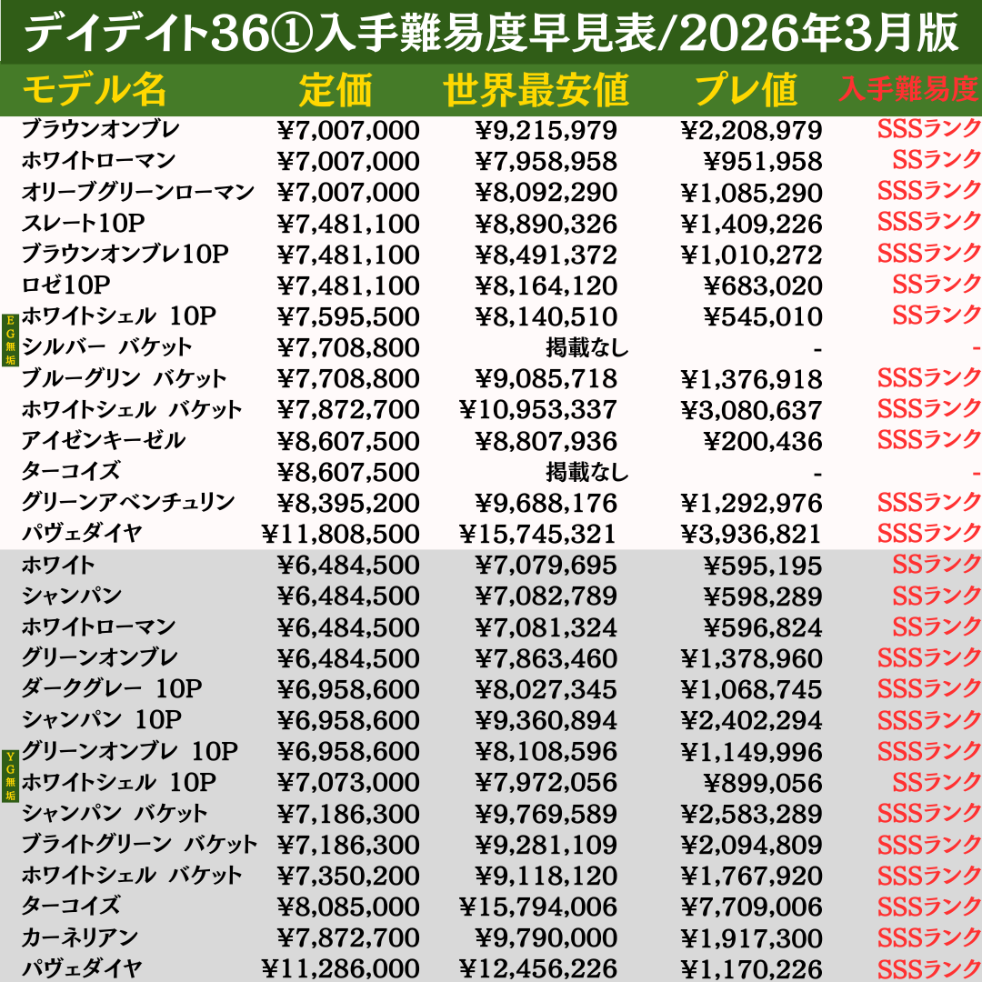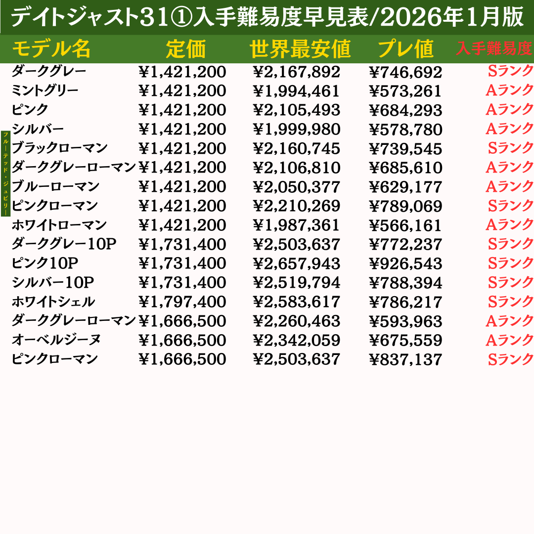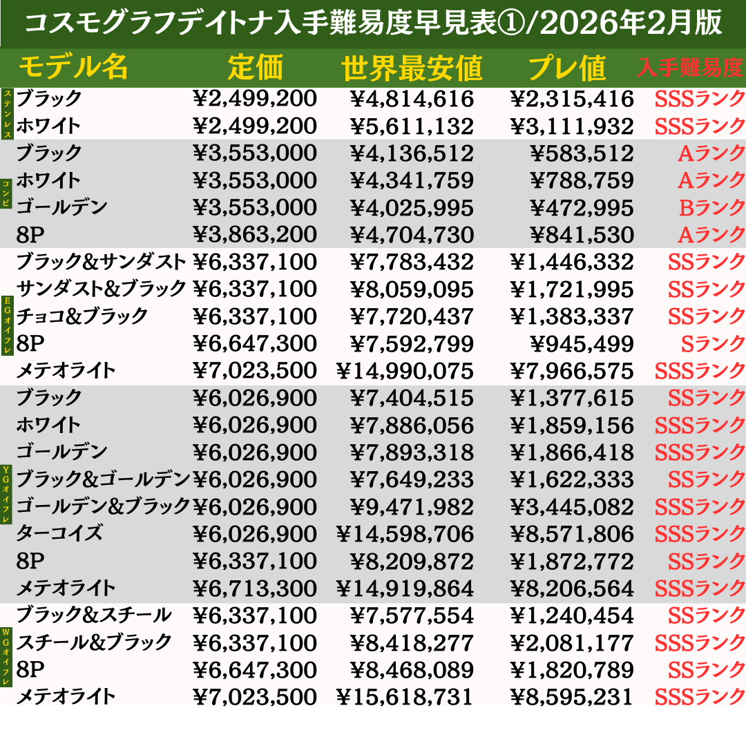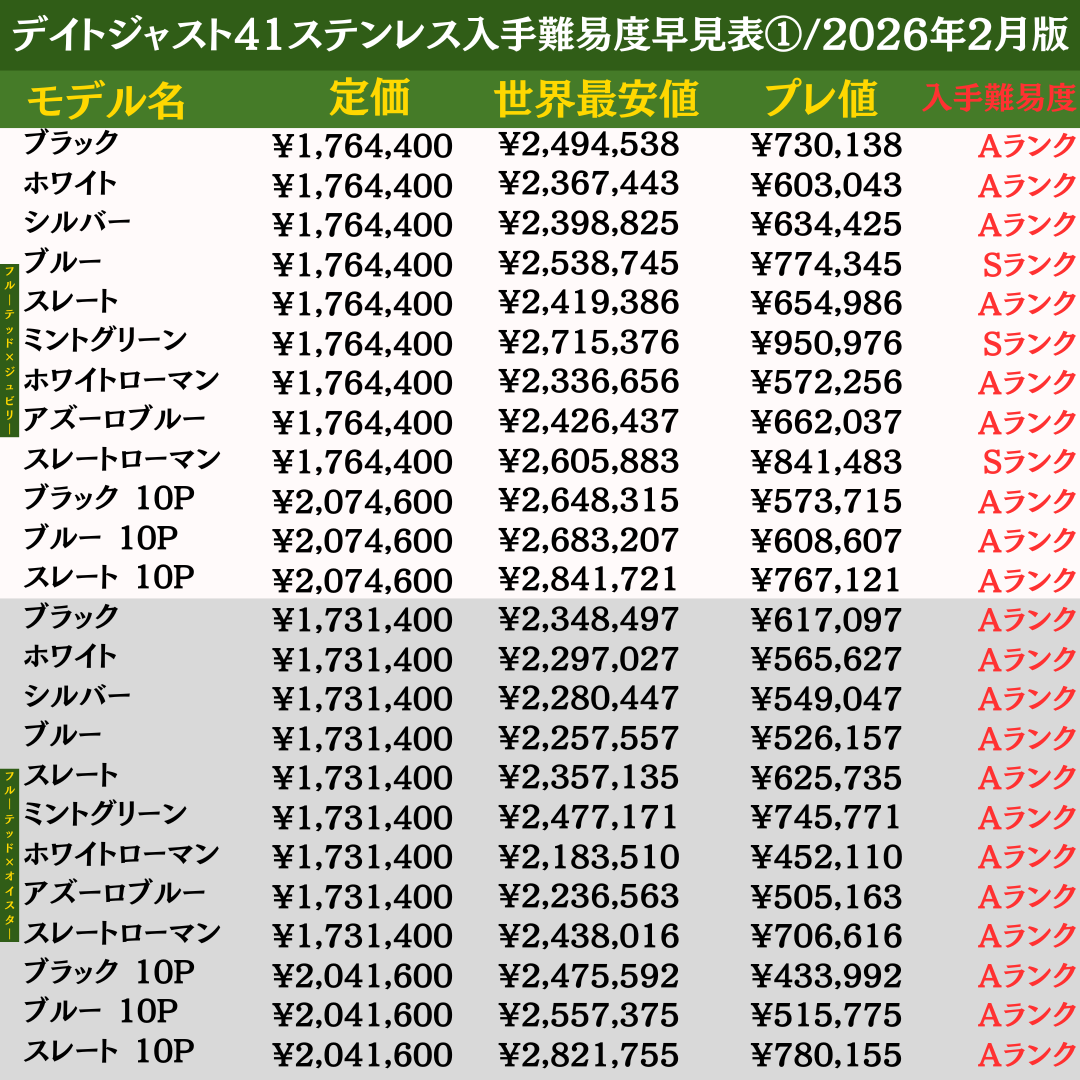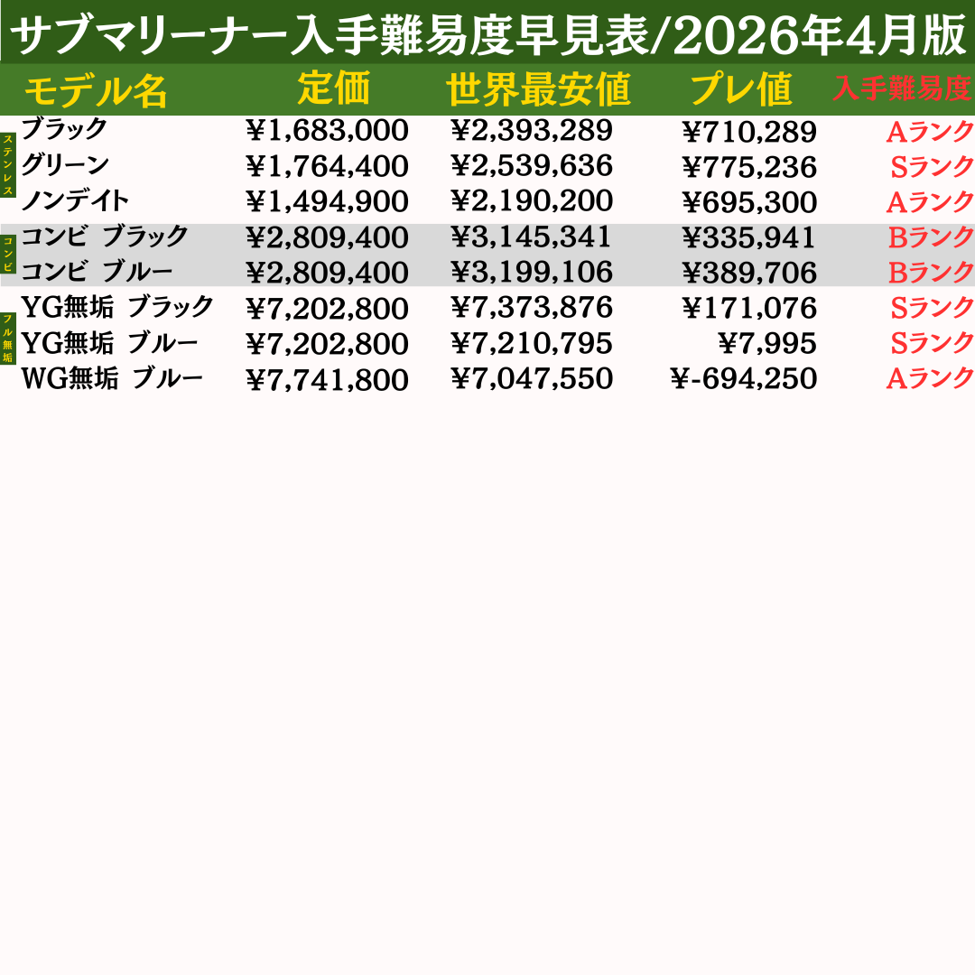 本ページでは、ロレックス全460モデルの最新入手難易度を一覧で確認できる「早見表」を公開しています。