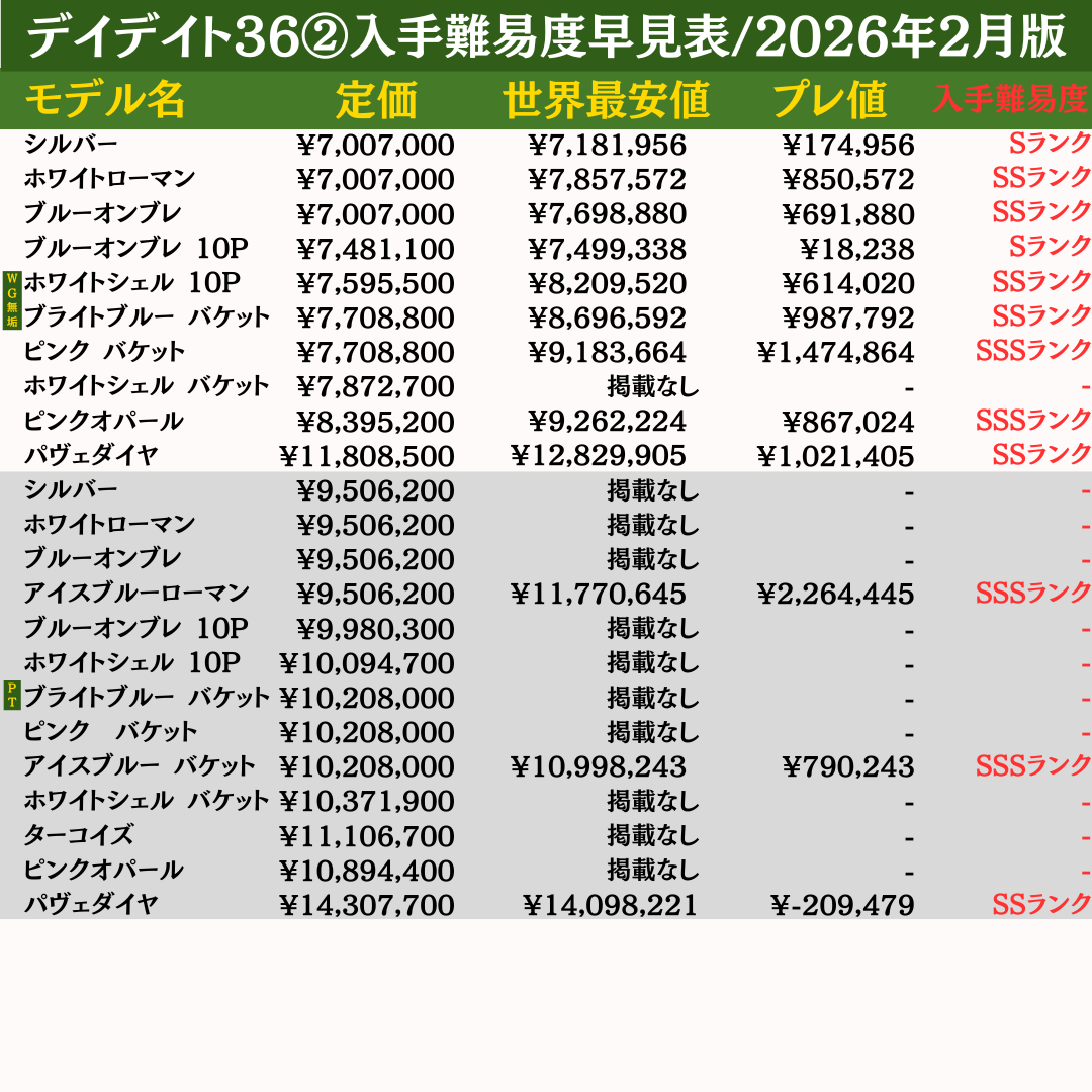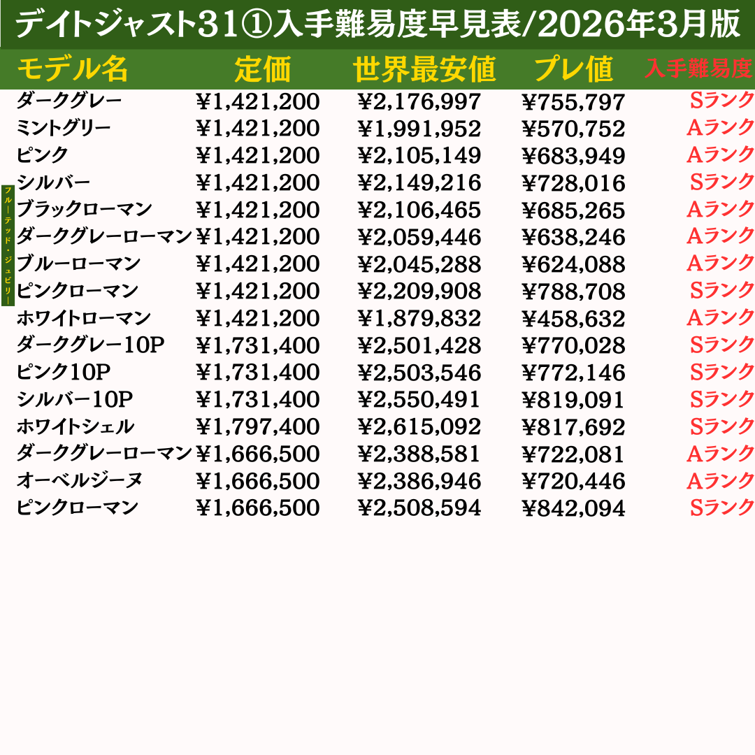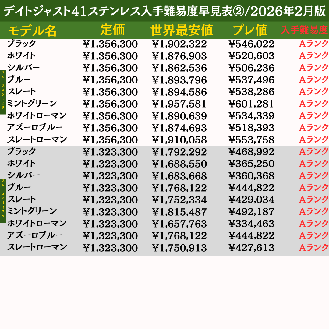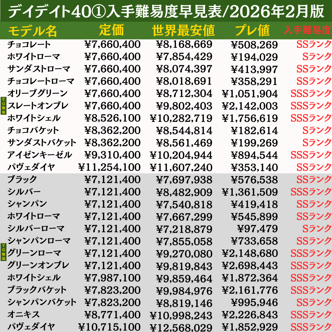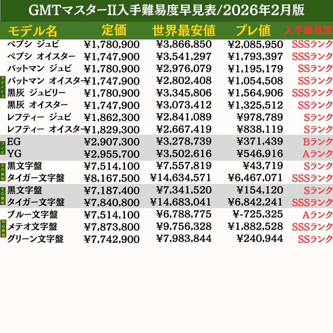 本ページでは、ロレックス全460モデルの最新入手難易度を一覧で確認できる「早見表」を公開しています。