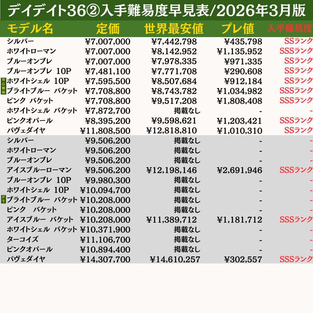 ロレックス入手難易度早見表