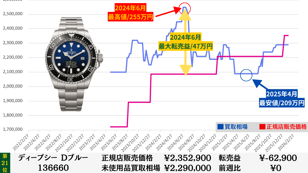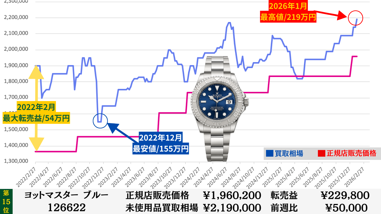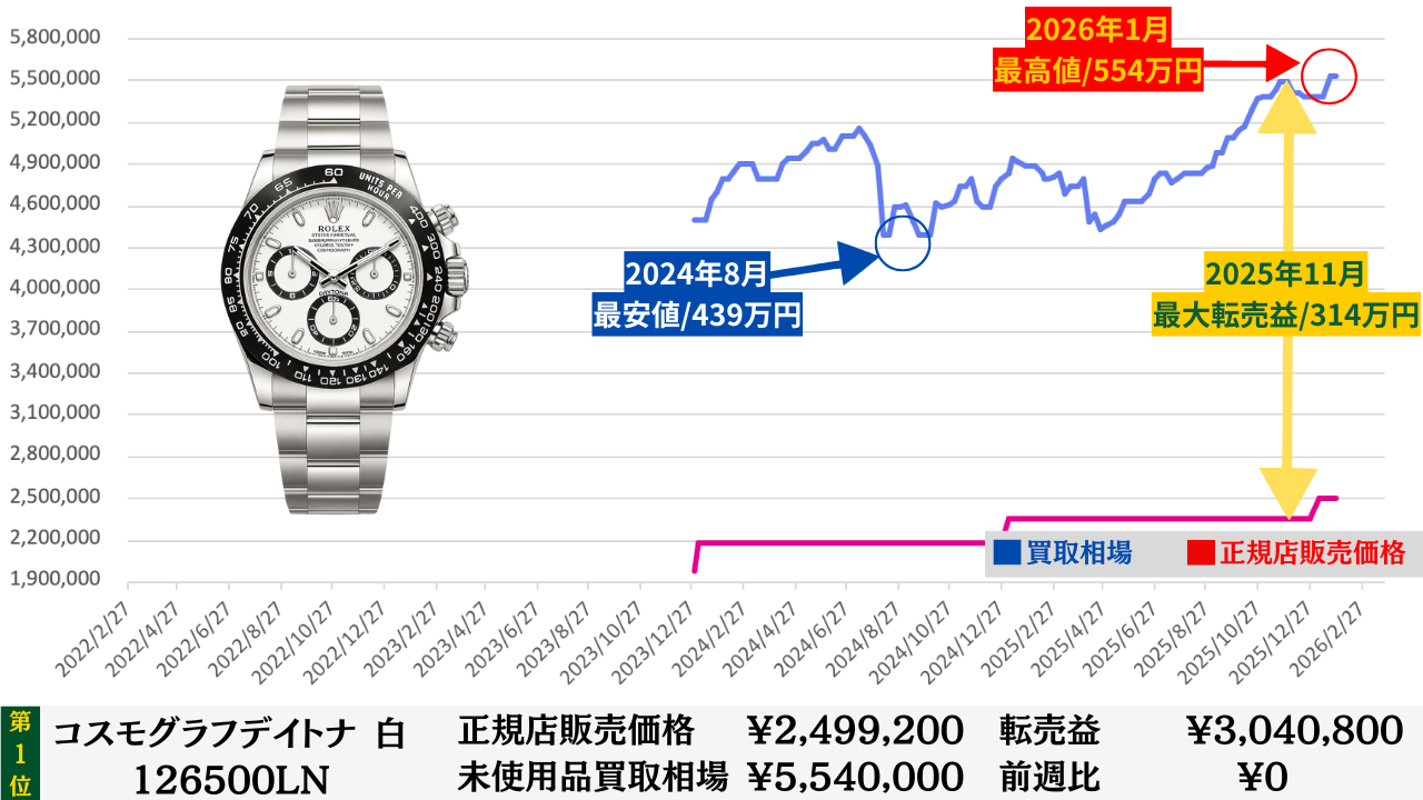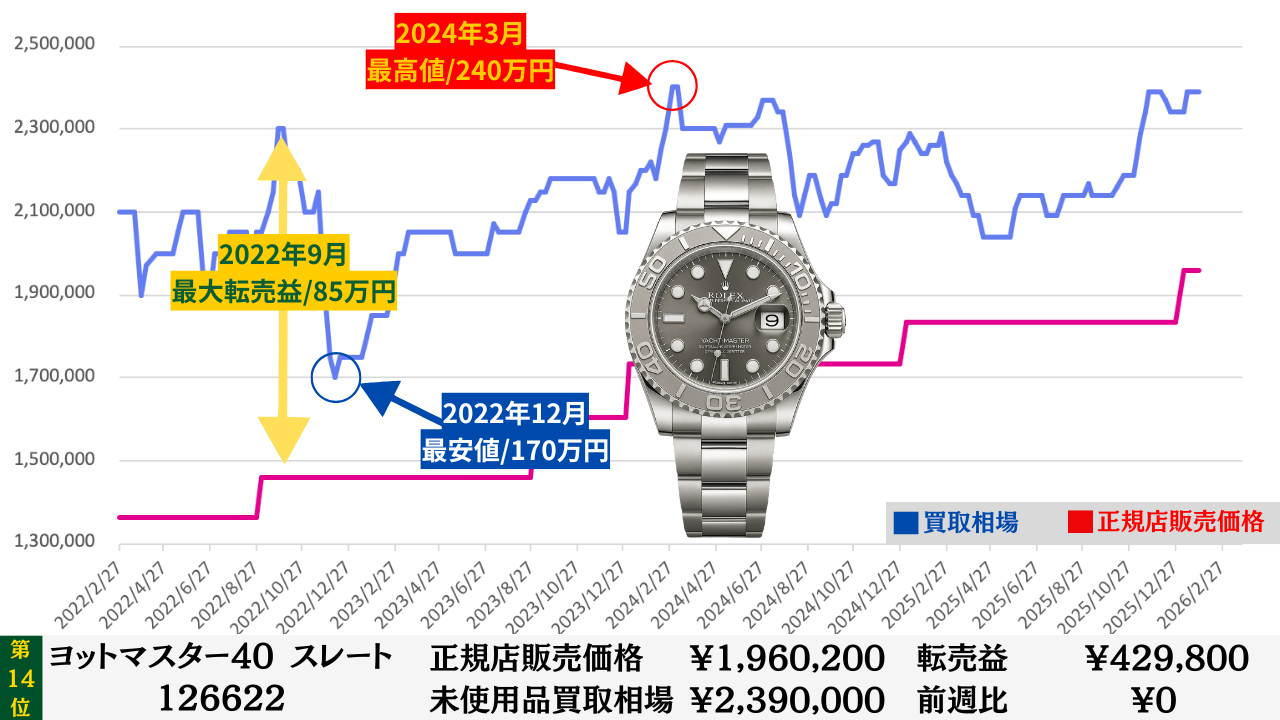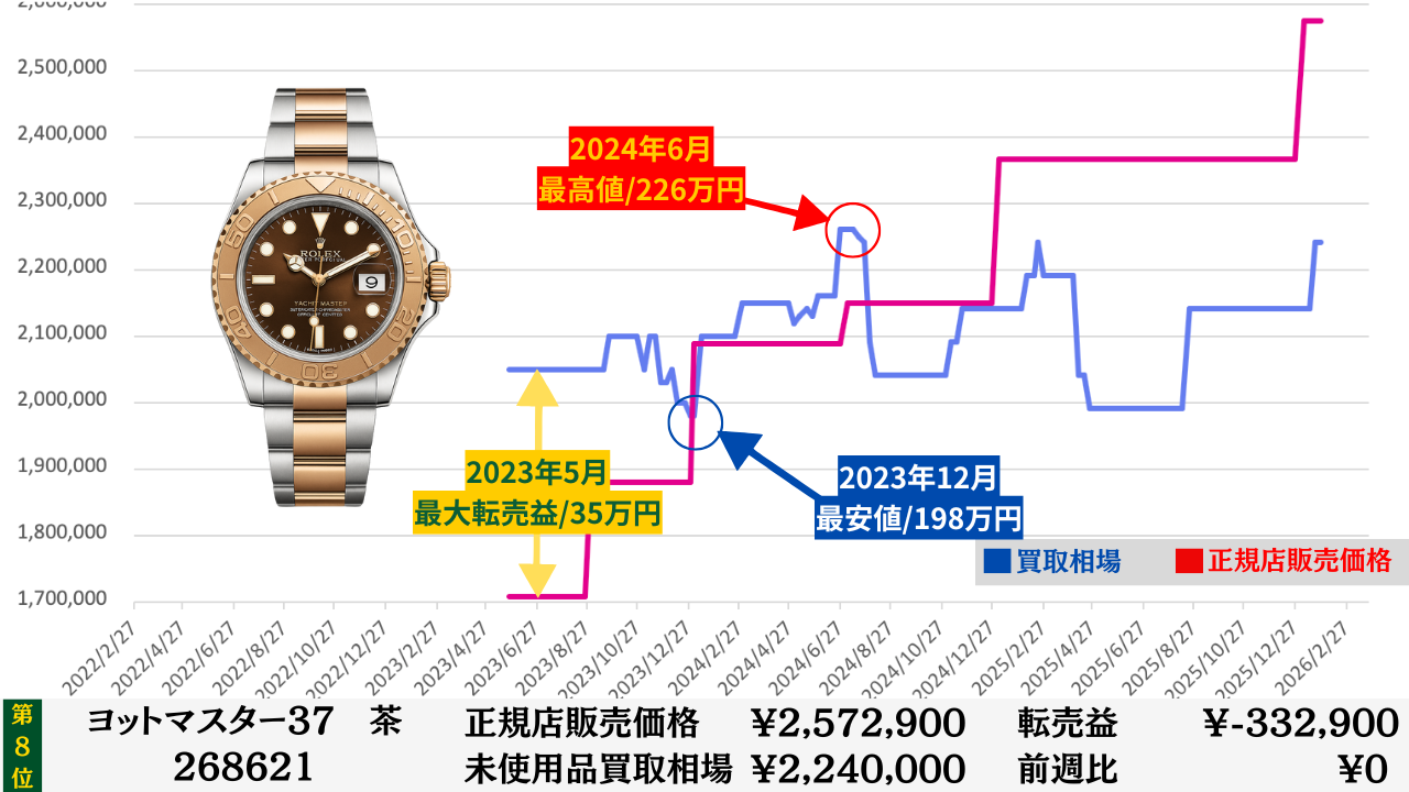 ロレックス買取相場推移グラフ/プロフェッショナルコンビモデル【転売益順】