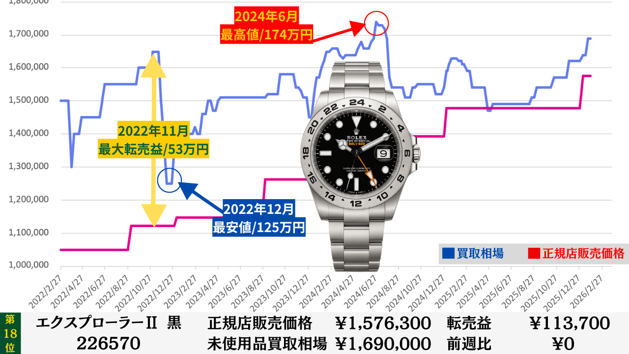 ロレックス買取相場推移グラフ/プロフェッショナルステンレスモデル【転売益順】